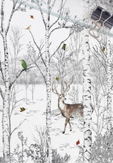 Dans le Grand Nord Canadien, la nature sauvage nous enchante. A l’orée de la forêt une grande plaine enneigée s’étend jusqu’au flanc de la montagne. Observez, écoutez le bruissement des feuilles qui virevoltent, le chant des oiseaux dans ce silence hivernal et le crissement des pas dans la neige.